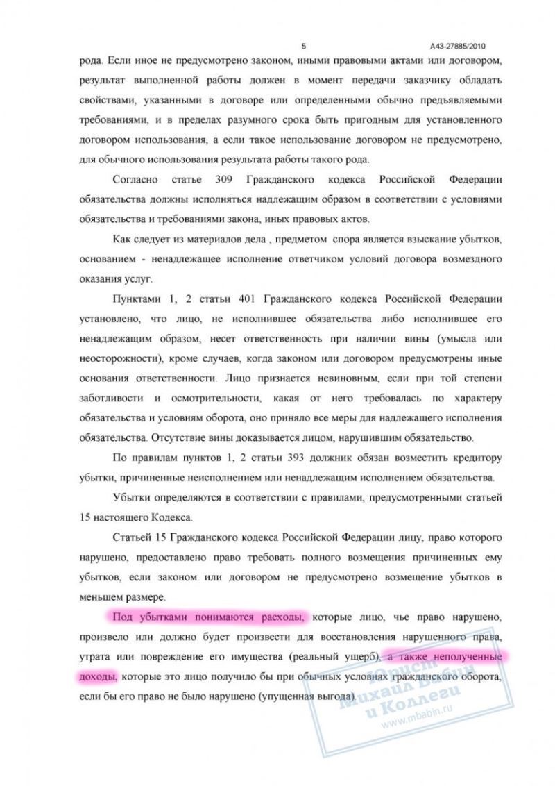 • Защищены права клиента по регрессному иску страховой компании