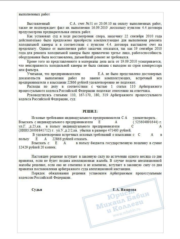 В удовлетворении встречного иска отказано. Судебные расходы отнесены на ответчика. На стадии исполнительного производства наши юристы обеспечили полное получение клиентом взысканной суммы.