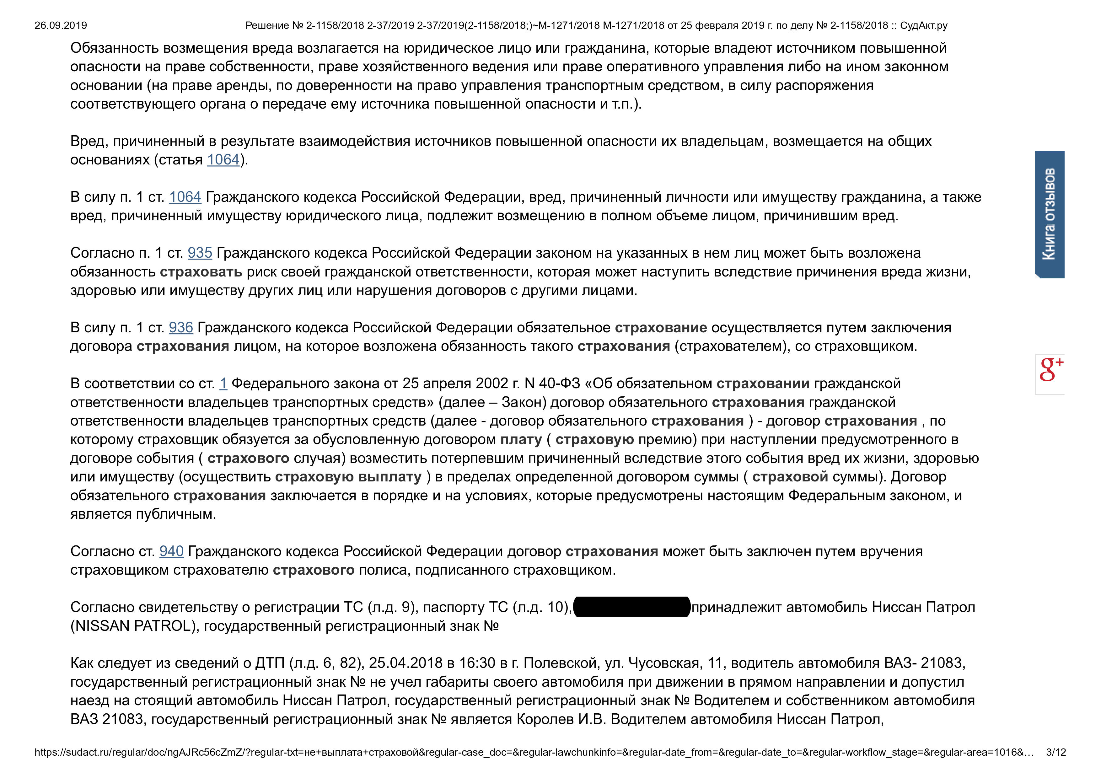 • Удовлетворен иск к страховой компании на ремонт автомобиля
