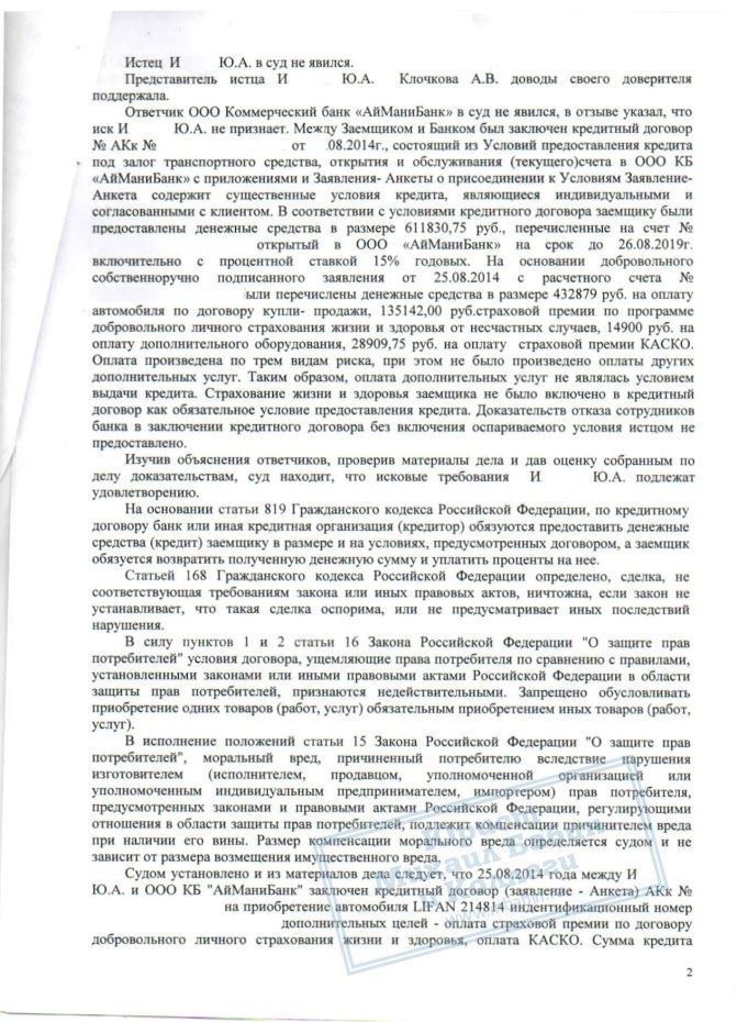 Отказ от страховок после заключения договора — это сложный процесс, поскольку клиент сам подписал согласие на неё. Однако, юристам нашей компании удалось доказать, что в данном случае закон был нарушен и страховка подлежит возврату.