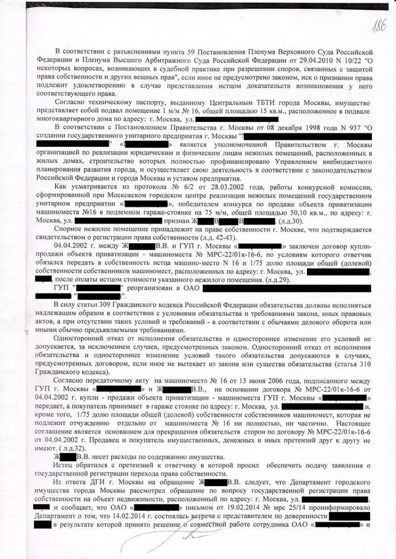 В 2002 году клиент приобрел в машиноместо, однако, вплоть до обращения к адвокату в 2015 году, клиент никак не мог зарегистрировать в Росреестре свое право собственности на данный объект и получал неоднократные отказы в регистрации права собственности.