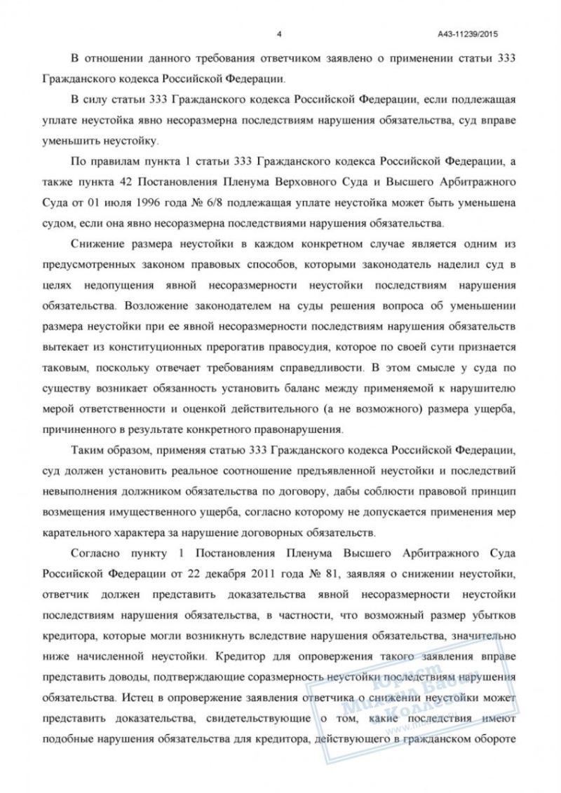 Суд снизил размер неустойки: